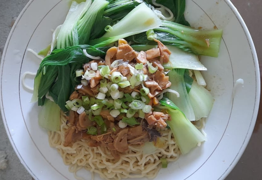 Mie dengan topping ayam kecap,jamur,dan pangsit